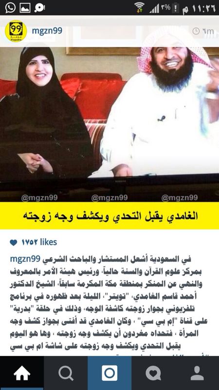 الغامدي وزوجته كاشفة الوجه بعد 1400 سنة يمكن للمرأة ان تضع المكياج ايضا في الاماكن العامة Freethinker مفكر حرfreethinker مفكر حر
